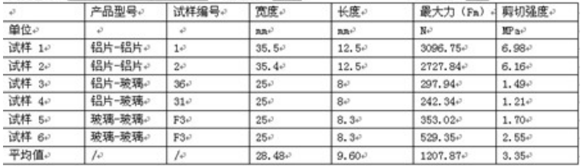 玻璃、铝片粘接的麻豆视频免费观看剪切试验