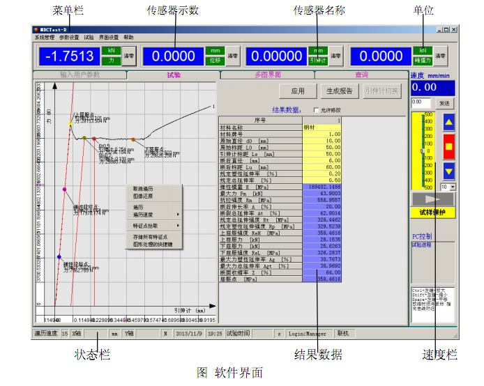 主要适用于对金属、非金属及复合材料的拉伸、压缩、弯曲、剪切等力学性能的测试,可实现应力、应变、速度等组合命令控制。配合高温炉使用可进行常温~600℃的高温试验,根据GB、JIS、ASTM、DIN等标准自动求取最大试验力值、抗拉强度、屈服强度、上下屈服点、抗压强度、弹性模量等参数,自动生成试验报告格式,并可随时打印试验报告曲线。