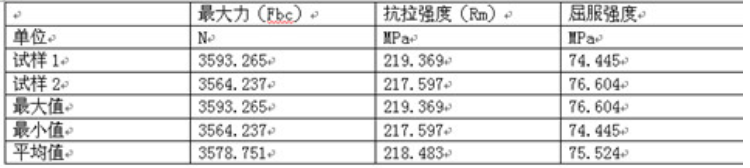 试验求取参数:抗拉强度(Rm)、屈服强度