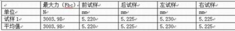 本次试验采用150mm盘径活动盘压缩夹具,在距离夹具前后左右边缘10mm处放置4颗一样的铅粒,测试力值到3000N试验停止,取出试样用千分尺测量出铅粒高度。