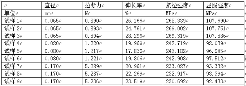 试验报告:需要测试抗拉强度,伸长率,拉断力,屈服模量