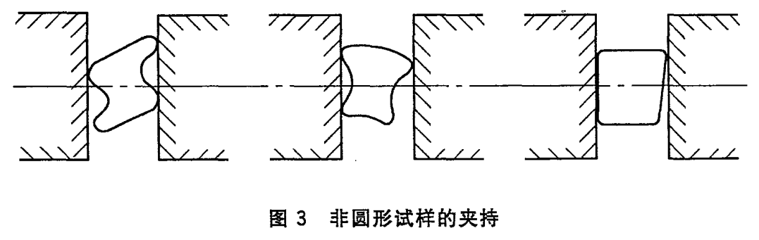 非圆形试样的夹持,应使其较大尺寸平行于或近似平行于夹持面,如上图所示。如仍然无法按上图夹持试样,可自行设计特殊的、与异型线材试样相匹配的异型夹具。