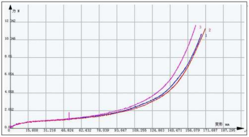 E、图形曲线尺度自动最佳化(Auto Scale),可使图形以最佳尺度显示。并可于测试中实时图形动态切换。具有荷重-位移、荷重-时间、位移-时间、应力-应变荷重-2点延伸图,以及多曲线对比。