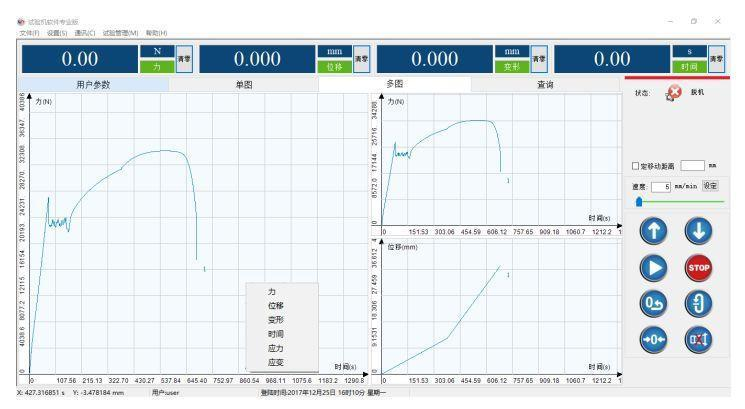 8、点击开始测试并记录好测试区间的数据,当绳子有断裂时候记录好此时的数据;