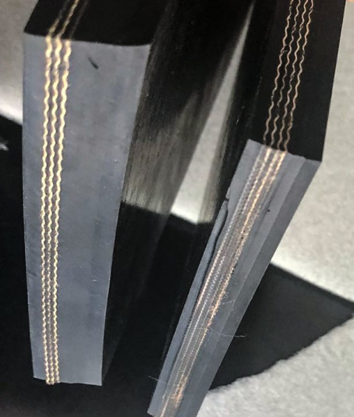 输送带试样应在离开带边至少50mm且无接头的部位切取,纵向试样的纵向中心线应与带的纵向中心线平行,横向试样的横向中心线应与带纵向中心线垂直。试样的纵向边到从输送带切取的样品的任何一条边的距离均不得小于12mm。
