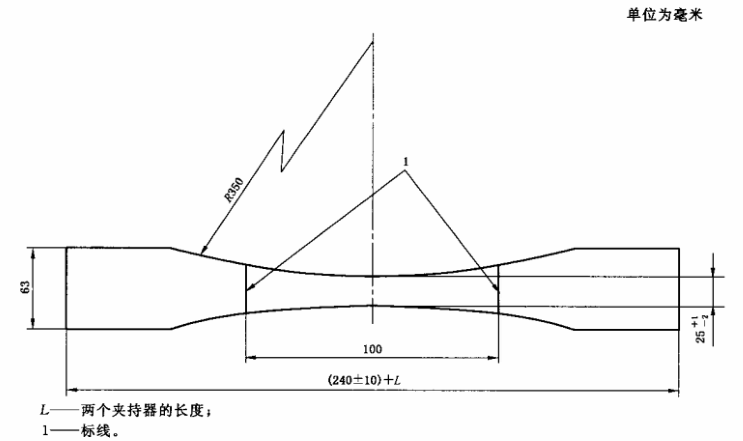 注∶如果裁取的试样上下宽度不一致,则取上下宽度的算术平均值作为试样中部最窄处的宽度。