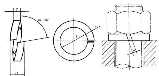 弹簧垫片的防松原理是在把弹簧垫片压平后,弹簧垫片会产生一个持续的弹力,使螺母与螺栓的螺纹连接副持续保持一个摩擦力,产生阻力矩,从而防止螺母松动。同时弹簧垫片开口处的尖角分别嵌入螺栓和被连接件表面,从而防止螺栓相对于被连接件回转。