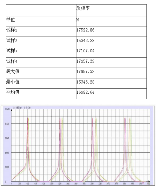 试验时用速度1mm/min加载到88.96kN,力值再卸载到0N,重复3次;再用速度1mm/min加载到88.96kN,到88.96kN时这个力值位移为起点,卸载力值,位移(变形)0.76mm时,试验结束,记录该点的力值。(该力值命名:反弹率)