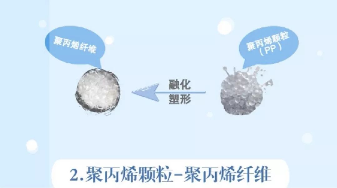 聚丙烯颗粒经过融化塑形得到聚丙烯纤维。