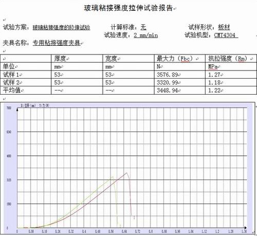 该客户是一家专门从事OLED照明面板和产品事业,集研发、生产、设计、销售于一体的股份制民营企业。玻璃是由二氧化硅和其他化学物质熔融在一起形成的,主要成分是硅酸盐复盐,是一种无规则结构的非晶态固体。广泛应用于建筑物,日用、医疗、化学、电子、仪表、核工程等领域。现代,玻璃已成为日常生活、生产和科学技术领域的重要材料。玻璃粘接强度是指玻璃单位粘接面上承受的粘接力,粘接强度主要包括胶层的内聚强度和胶层与被粘面间的粘接强度。此次该客户委托我司做的是玻璃粘接强度的拉伸试验,如下的相关试验数据及参数是用麻豆激情视频三思泰捷的麻豆免费性爱视频设备得出的结果: