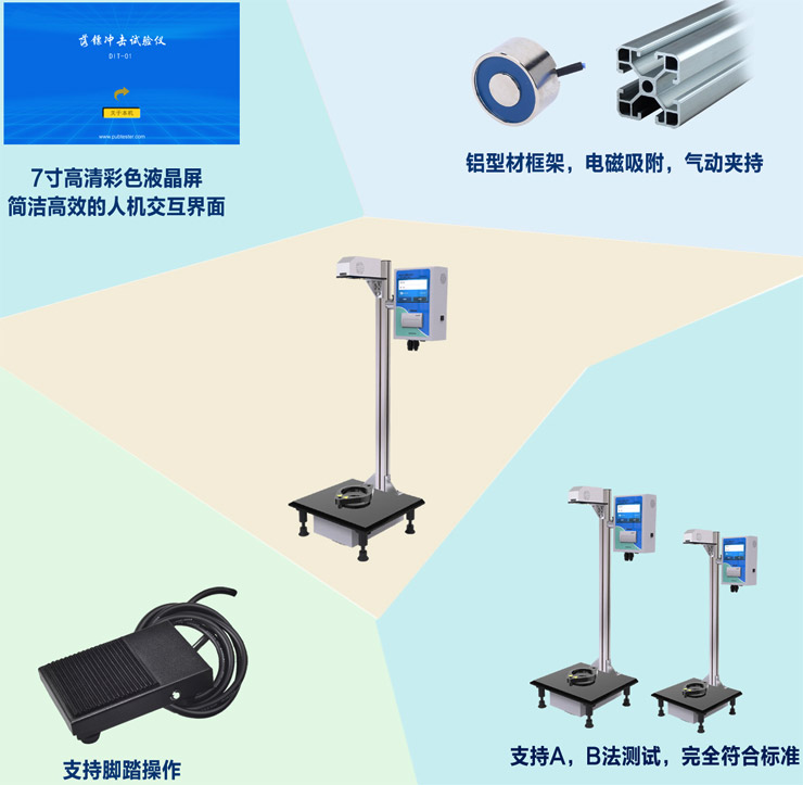 落镖冲击麻豆免费性爱视频又名落镖冲击强度试验仪,主要用于厚度小于1mm的塑料薄膜或薄片在给定高度的自由落镖冲击下,测定50%塑料薄膜或薄片试样破损时的冲击质量和能量。本机搭配7寸高清彩色液晶屏,简洁高效的人机交互界面,整机采用铝型材框架,电磁吸附,气动夹持,并支持脚踏操作。