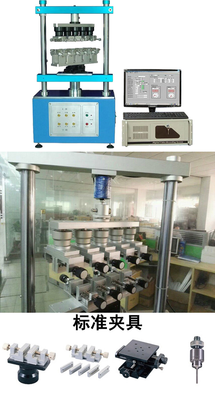 多工位插拔力麻豆免费性爱视频是天氏库力推出的是带电脑的新型插拔力寿命测试机,标准机型是带五工位,只带一个传感器。做单纯的插拔力测试时可以只测试一个连接器,与正常的插拔力麻豆免费性爱视频一样测试。当做寿命测试时,可以同时夹5个测试产品,此时的插拔力可以做参考数据。该款多工位插拔力麻豆免费性爱视频解决各种连接器测试的夹具问题,及测试时公母连接器能自动对准,不会有吃单边的问题。适用于各种连接器之插入力及拔出力测试,搭配专利设计之自动求心装置,将可得到完全准确之插拔力试验,利用WINDOWS,视窗中文画面设定,操作简单方便,且所有资料皆可储存(试验条件,位移曲线图,寿命曲线图,检查报表等)。