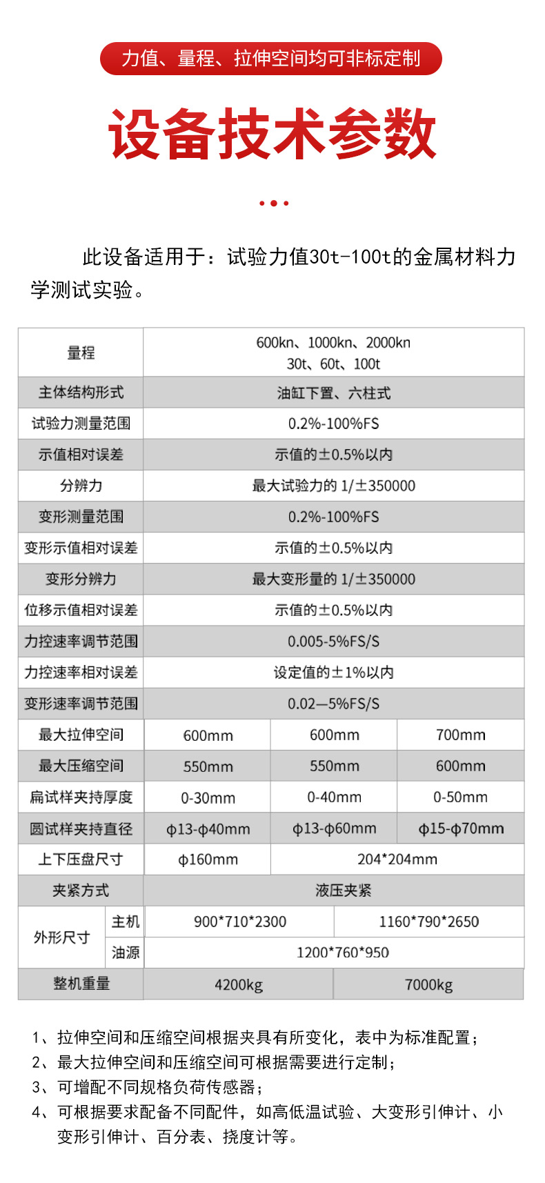 恒力、恒位移、恒变形控制范围:0.4%-100%FS