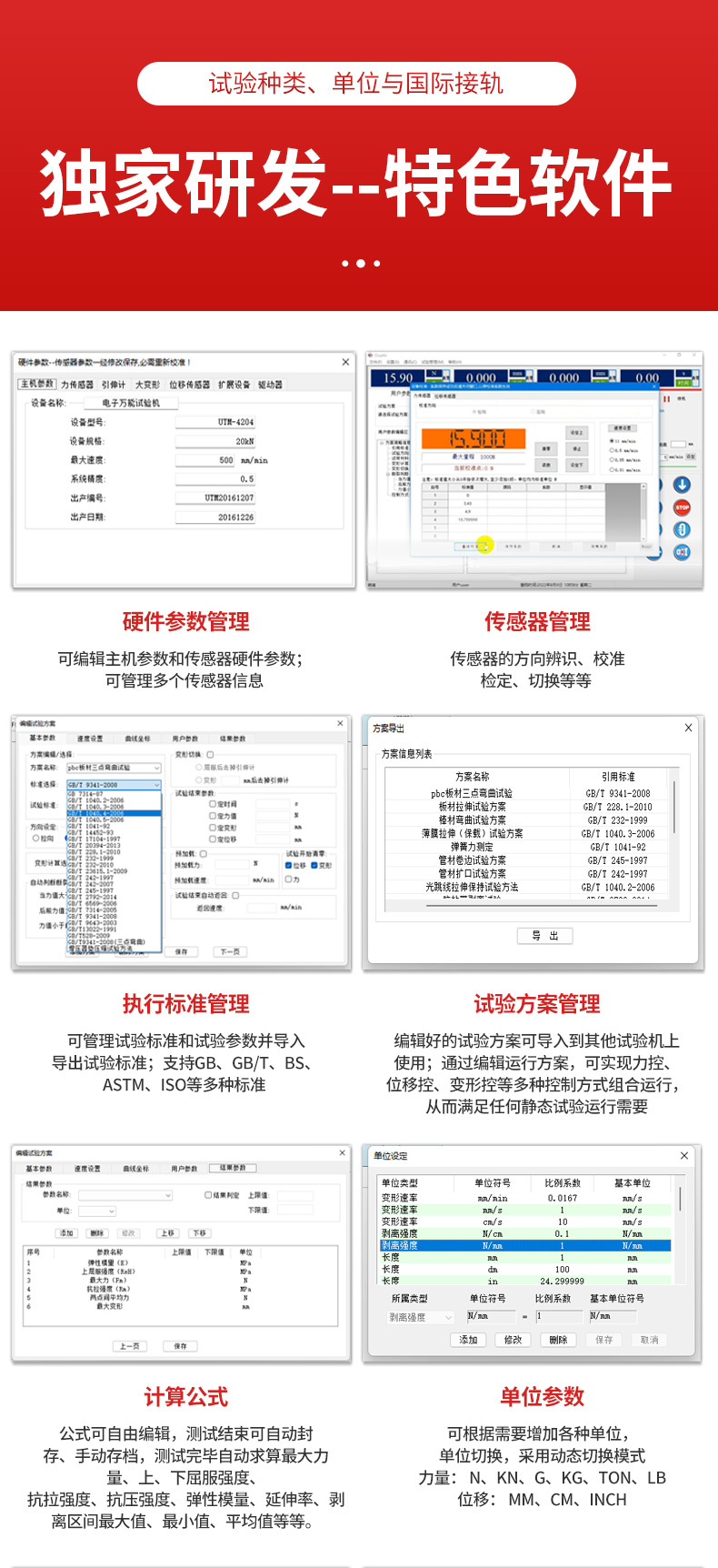 4.实现了试验力、试样变形、横梁位移和试验进程的四种闭环控制;