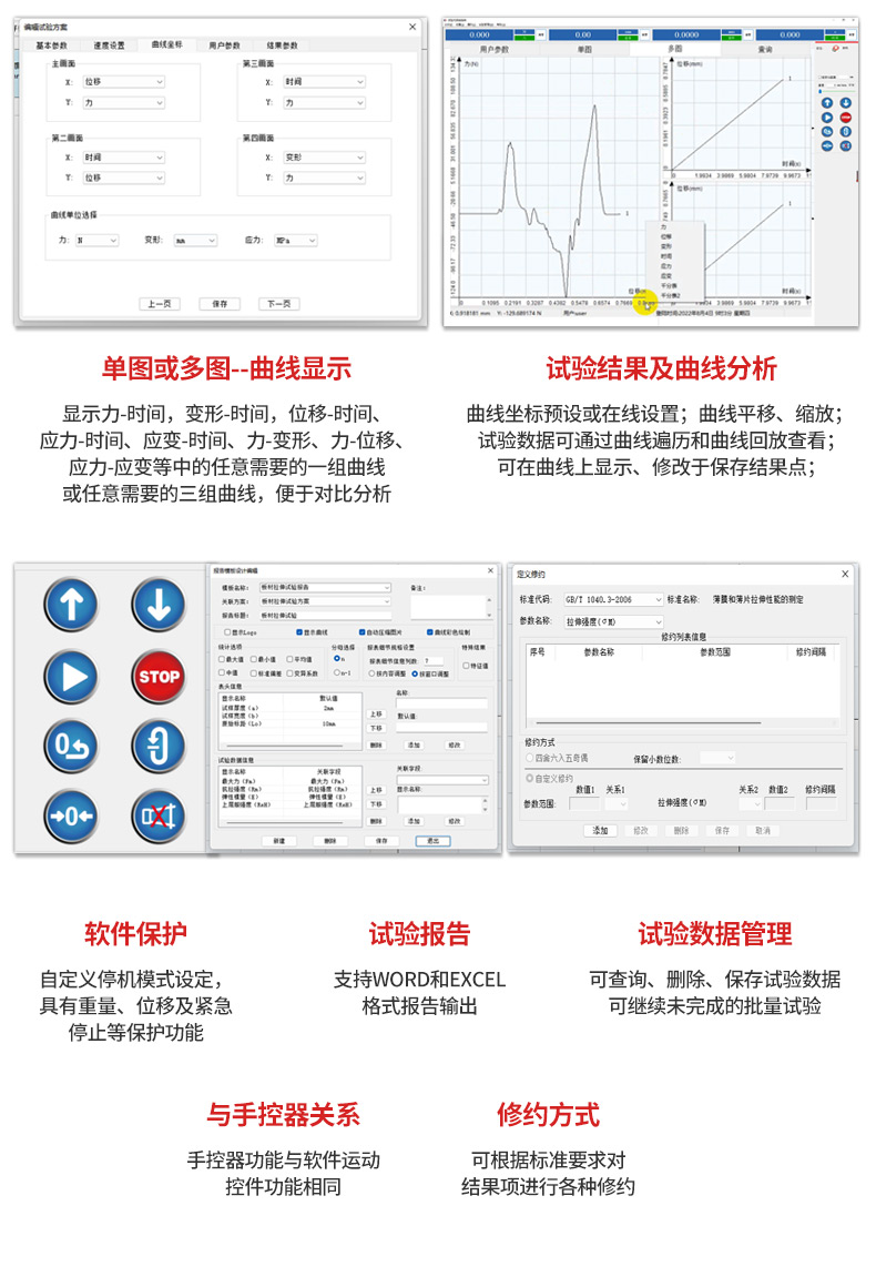 4.实现了试验力、试样变形、横梁位移和试验进程的四种闭环控制;