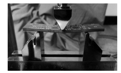 1、首先将弯曲夹具安装到压力麻豆免费性爱视频的机台上,然后将电路板样品放在弯曲夹具上。